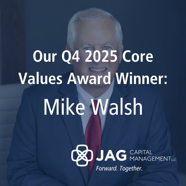 We are proud to recognize Mike Walsh as our Q4 2025 JAG Capital Management Core Values Award Winner, honoring both his embodiment of our Accountable core value and his extraordinary 45th anniversary as a valued member of the JAG team. Throughout his tenure, Mike has consistently demonstrated what accountability looks like in action. He is […]