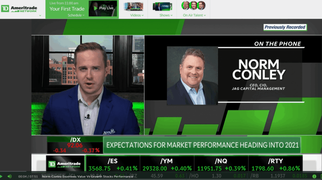 July 30, 2020 — JAG Capital Management CEO and CIO Norm Conley appeared on TD Ameritrade Network’s “The Watch List” to share his Q2 2020 market outlook and stock picks. Click here to watch.