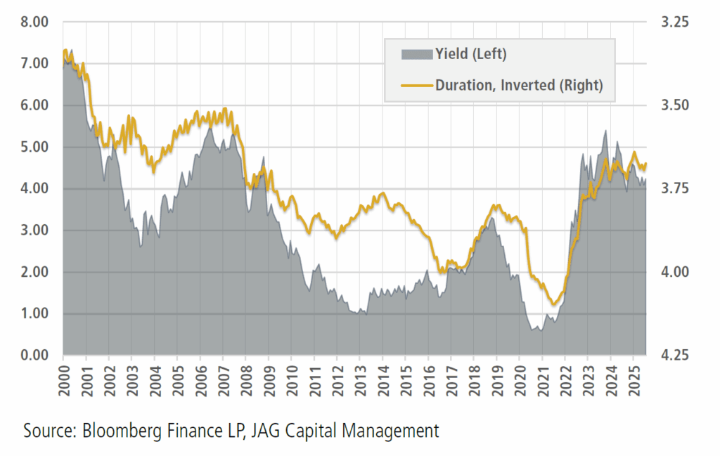 September 2025 – Beyond the Yield: A Risk-Based Case for Bonds Summary JAG has maintained a constructive bond market outlook for several years, enduring bouts of volatility, tight credit spreads, and a prolonged yield curve inversion. Despite evolving risks, we consistently reach the same conclusion: absolute yields remain attractive. While this view may sound simplistic, […]