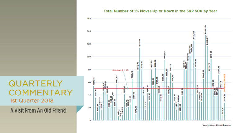 Market volatility has returned from an extended vacation, resulting in a roughly 10% correction for the S&P 500 since its January high and a -.8% decline for the 1st quarter of 2018. This was the index’s first 10% correction in two years, and it broke a streak of nine consecutive quarterly gains dating back to the 3rd quarter of 2015.
