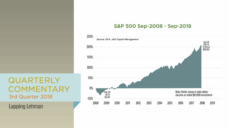 With that in mind, we note that the calendar is (finally) beginning to “lap” the Great Financial Crisis of 2008-2009. By this we mean that it has now been more than ten years since Lehman Brothers spectacularly failed on September 15, 2008, which kicked off the climactic phase of the worst economic and market event since the Great Depression in the 1930’s. Post-Lehman, the S&P 500 gyrated through another six months of gut-wrenching volatility before finally bottoming for good in March 2009.