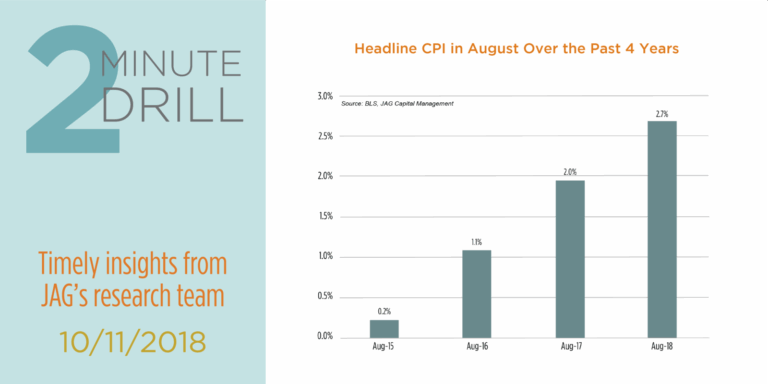 However, we acknowledge that higher inflation can make some investors nervous. We think this nervousness is at least part of the explanation for the last two weeks of skittish market action. We have been asking ourselves what investors look for when inflation concerns are rising. Our answer: businesses that reliably generate cash and can push through price increases to customers. The areas of the market that have worked for the last few weeks seem to align with that thought. Randgold Resources is up nearly 20% since September lows, the Energy sector has held up relatively well, Consumer Staples and Healthcare look increasingly attractive given their ability to generate a steady stream of cash. We think that steady inflation pressure could continue, and we are reacting appropriately by focusing on strong cash generators that have pricing power.