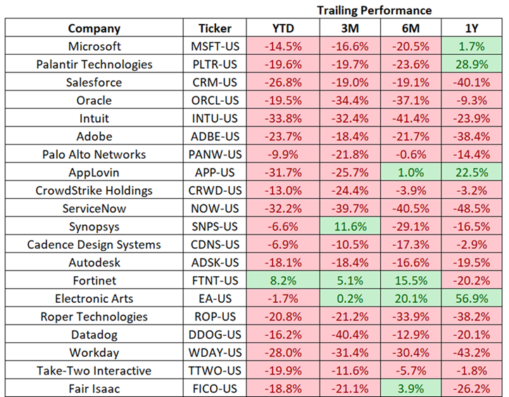 Finally, the AI buildout is proving to be very capital-intensive and requires significant resource allocation from the world’s largest tech enterprises. Alphabet (GOOGL) and Amazon (AMZN) alone announced they will spend a combined $380B on capex in 2026, with the majority of the spend directed towards data centers/AI. This prioritization will also likely exert pressure on IT budgets that otherwise would be directed towards software.